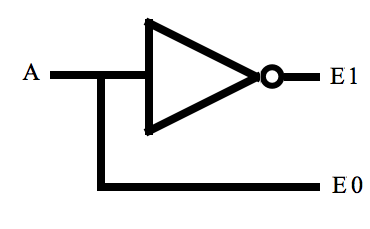 In the fanciful case where system memory is comprised of only two memory locations, the decoder diagramed in the following figure would suffice.