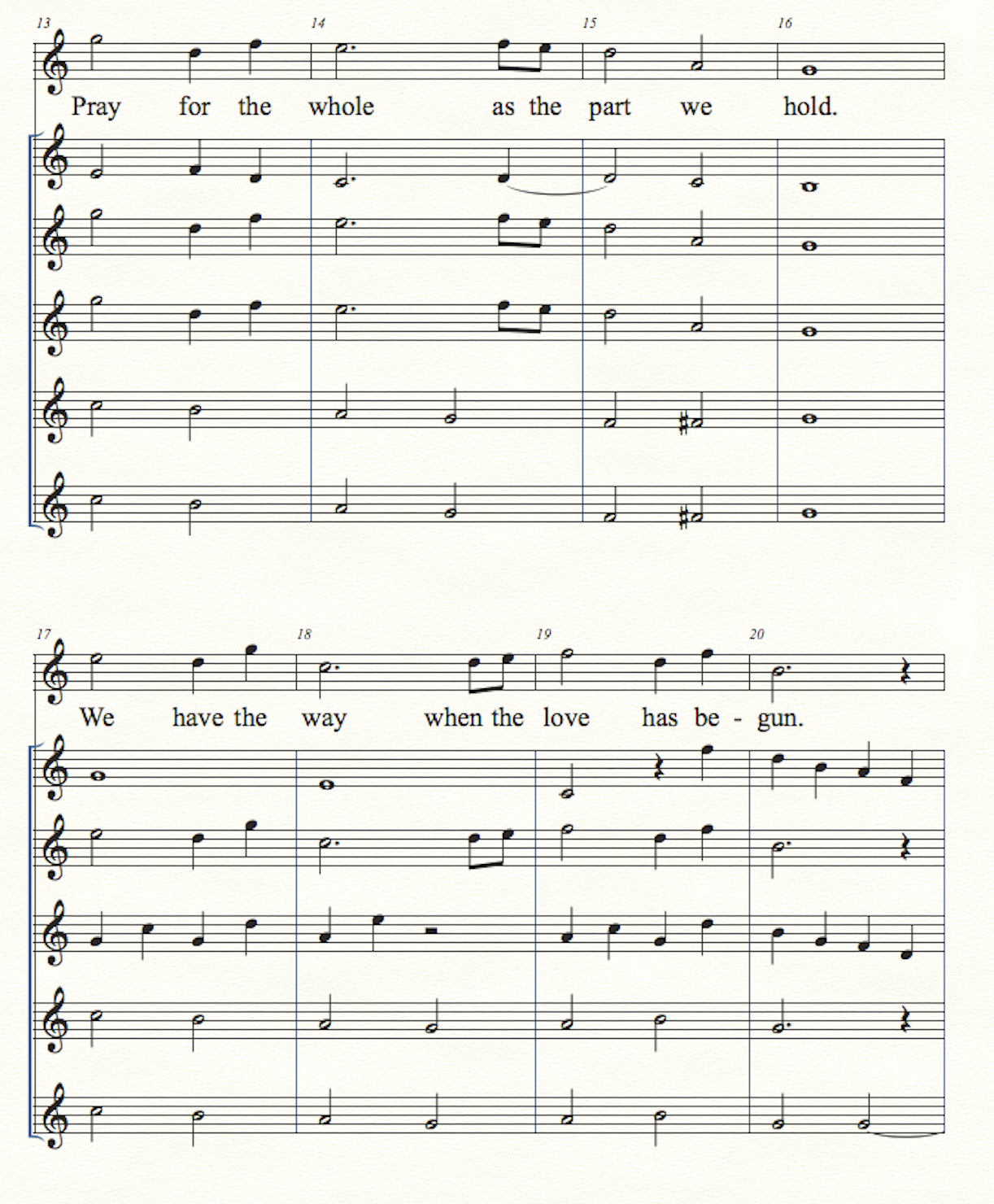 In the instrumental section of the score below, the lowest staff